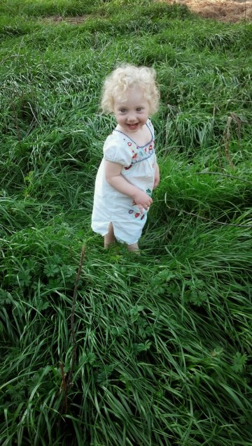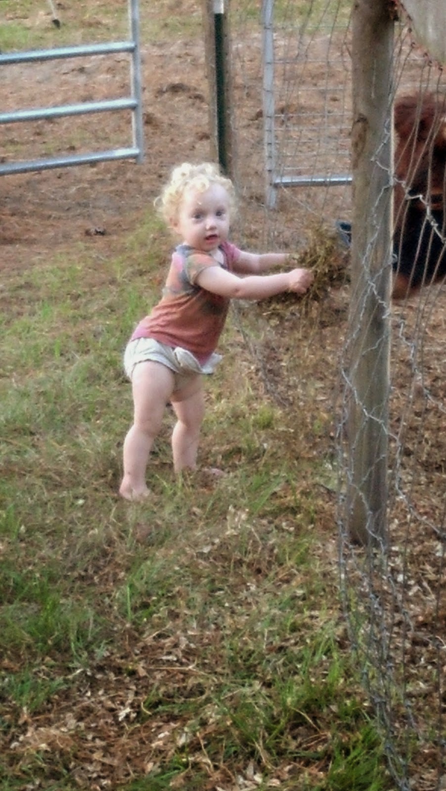 This was from warmer days–Clothilde helps to feed the animals! She loves all of them, and isn’t afraid.