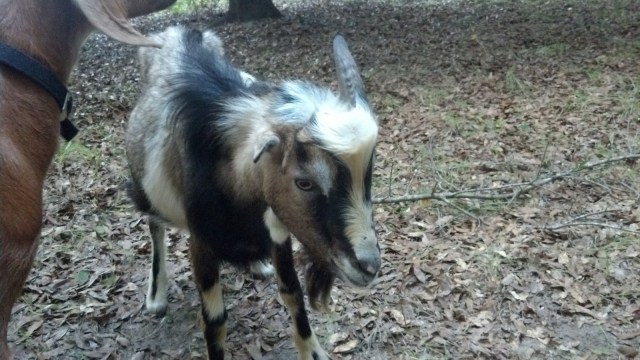 He was a good buck, got all the girls bred, was friendly and gentle, and towards the end of his stay was not even terribly stinky. The drawback was that he was very funny looking. His mama was a La Mancha and his father was a Kinder (Nubian and African Pygmy). My friend Denise lent him to us for free. His dad had gotten in with the does and so he was sort of an accident, but we weren’t picky at all this year. She said his mama made the most milk of all the goats, but he did have wattles and weird little Shrek ears.
