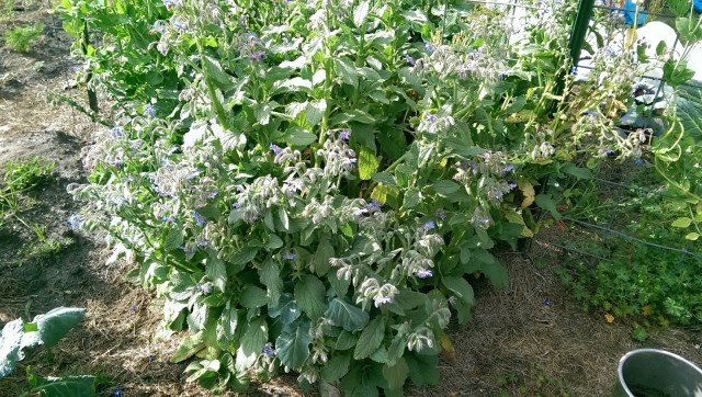 Now that so many things have gone to seed, there’s not too much growing there now, except the borage. She is certainly queen of the garden at the moment, and I enjoy her beauty every day. I even made an herb cream cheese spread from the leaves.