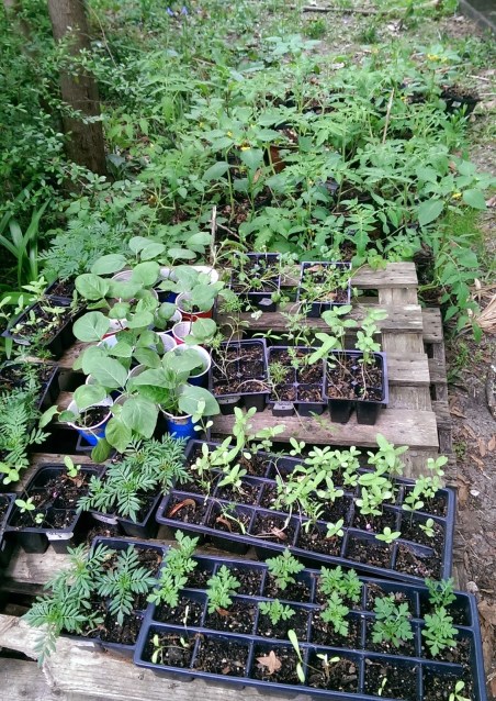 I’ve started bringing my summer starts out to get used to their permanent home. They are all doing very well. I watered them with some Desert Dynamin clay mixed into the water after bringing them out, and I think they liked that a lot. Notice all the flowers starts! I hope it is a beautiful garden this year.