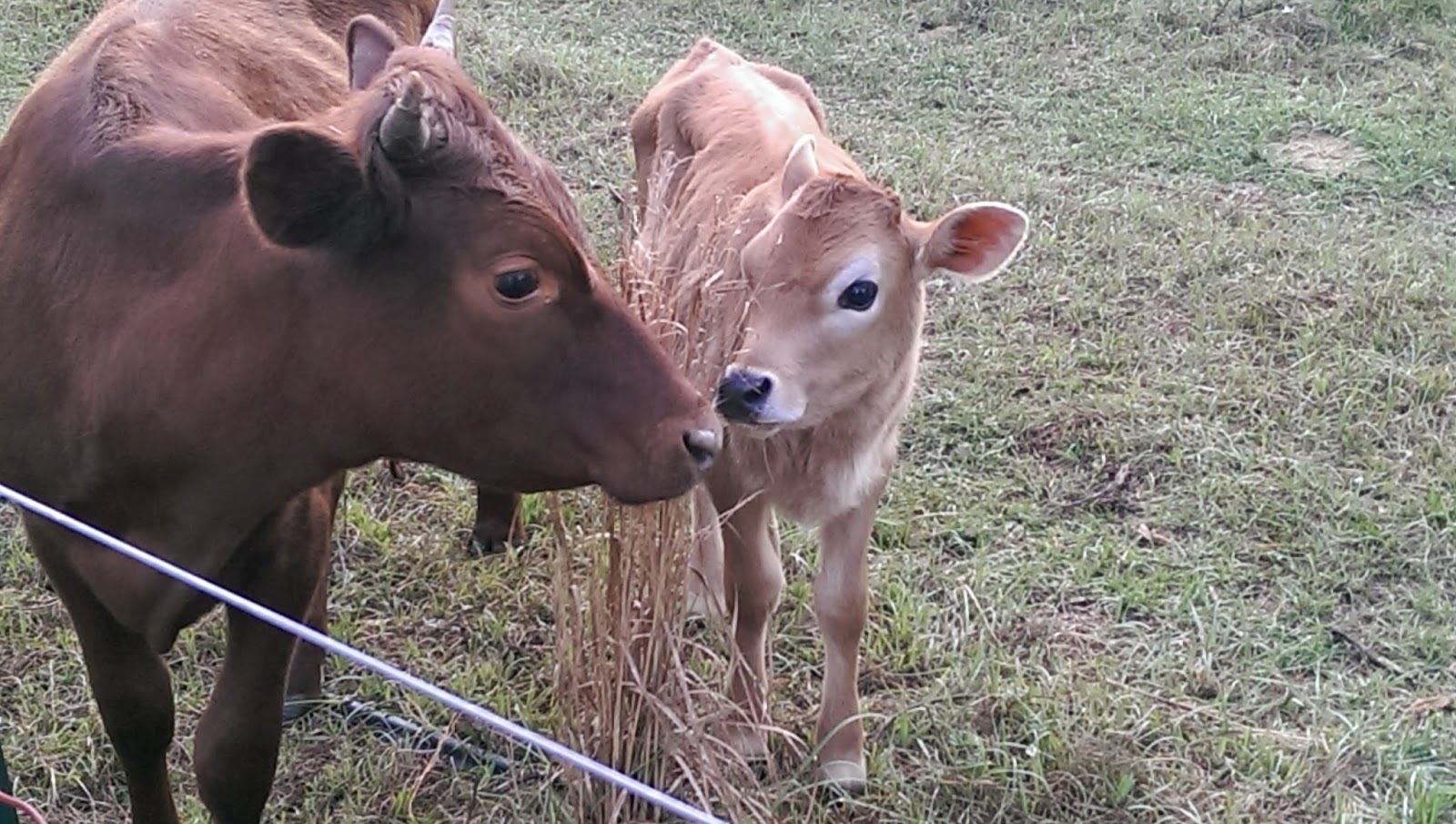 I thought it was so sweet that she is so motherly towards him. She’s only 18 months, and has never had a calf of her own. She was there when he was born, and I wonder if she had bonded with him then, because she was so upset when we moved her out away from him afterwards.