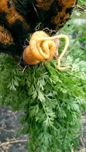 We also got a crazy corkscrew carrot from the winter garden! I still can’t believe how nice the carrots are this year. They look like sumo wrestlers compared to the usual pencil-thin-and-nubbly ones we’ve always grown.