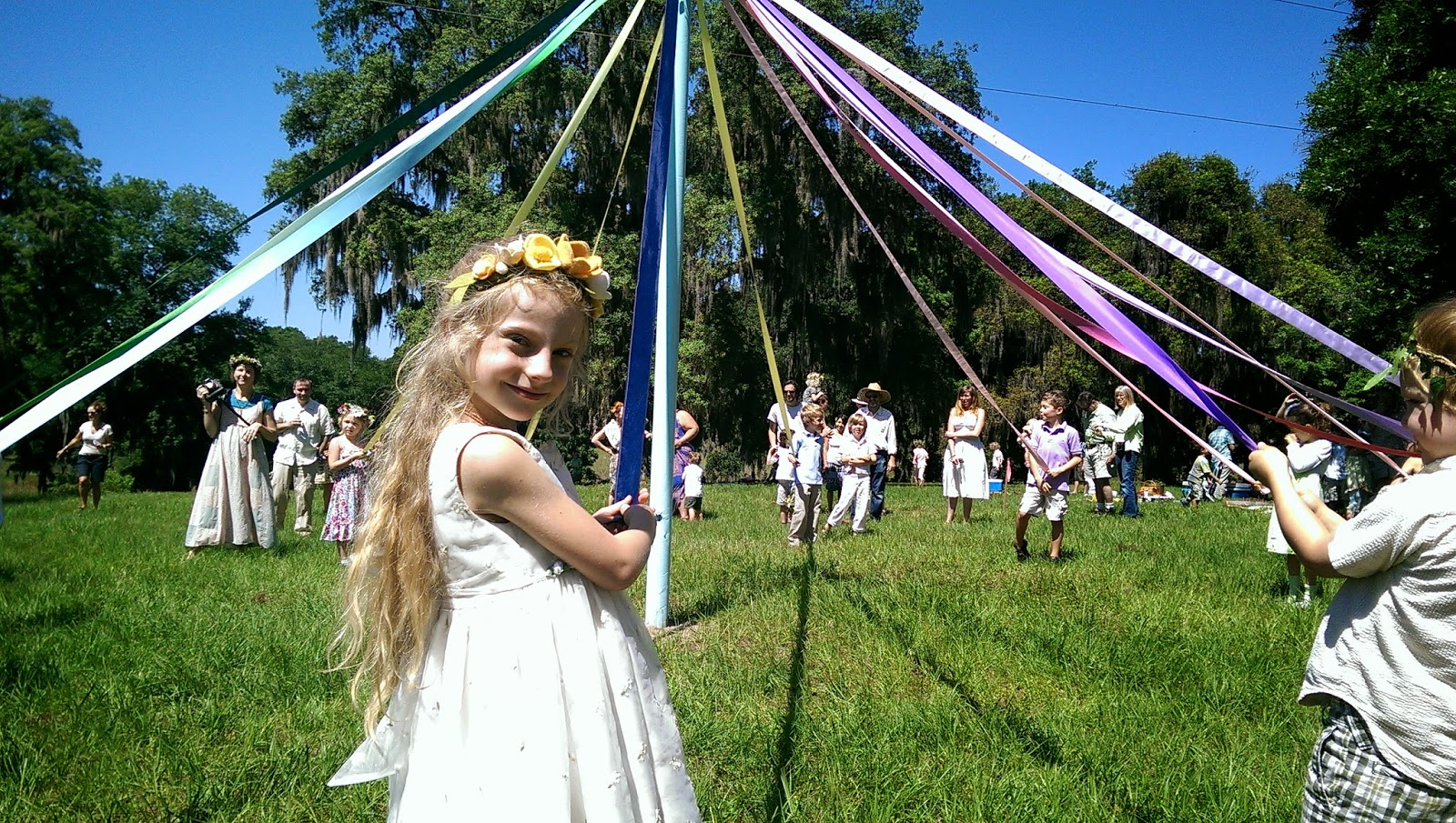 With the beautiful ribbons and singing, it was really a magical event. Only one little kid fell. It was when Rose’s class was up doing the maypole dance. All the little kids were chanting, “It’s easy! It’s easy!” Just then a little girl went down face first, and everything ground to a halt.