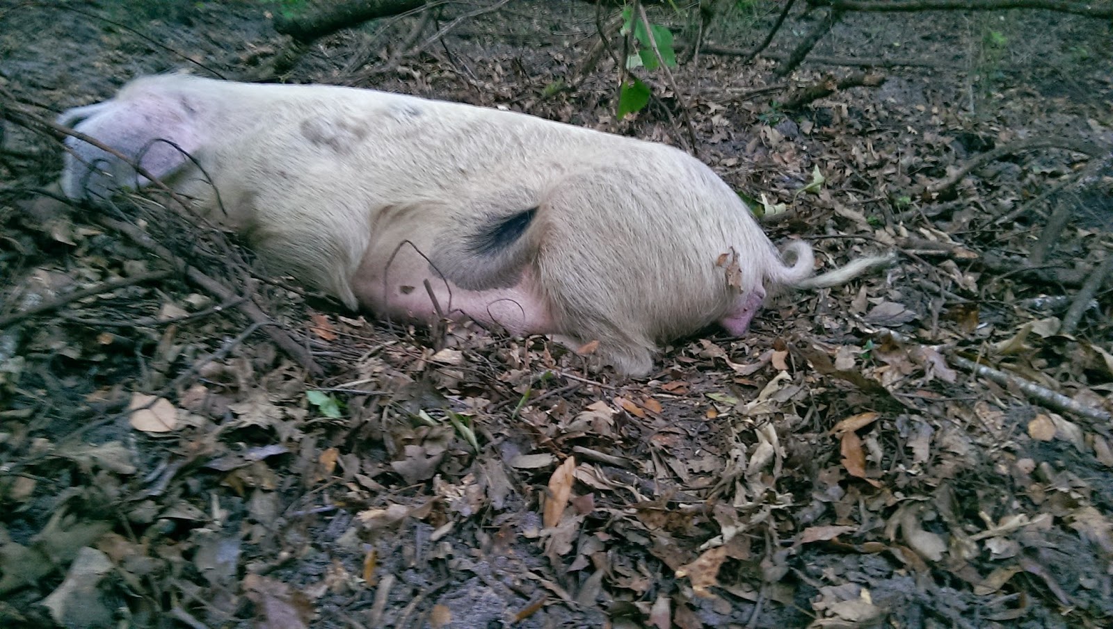But on Friday when Ethan went to feed the pigs, Star did not show up to eat. He went looking for her, thinking that at the worst she had swallowed some glass from the old homestead site, or best she had escaped. But when he found her, there was a third possibility he didn’t think of.