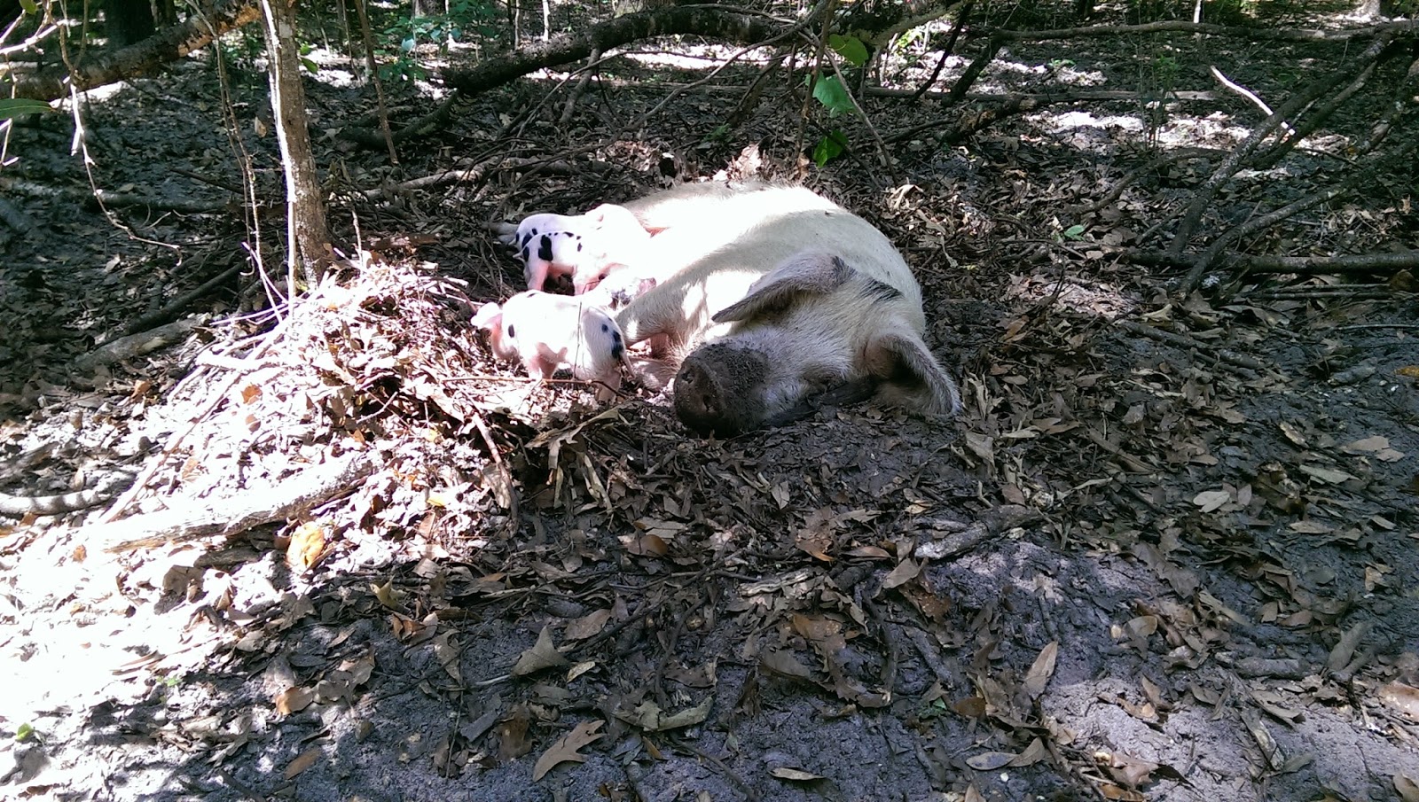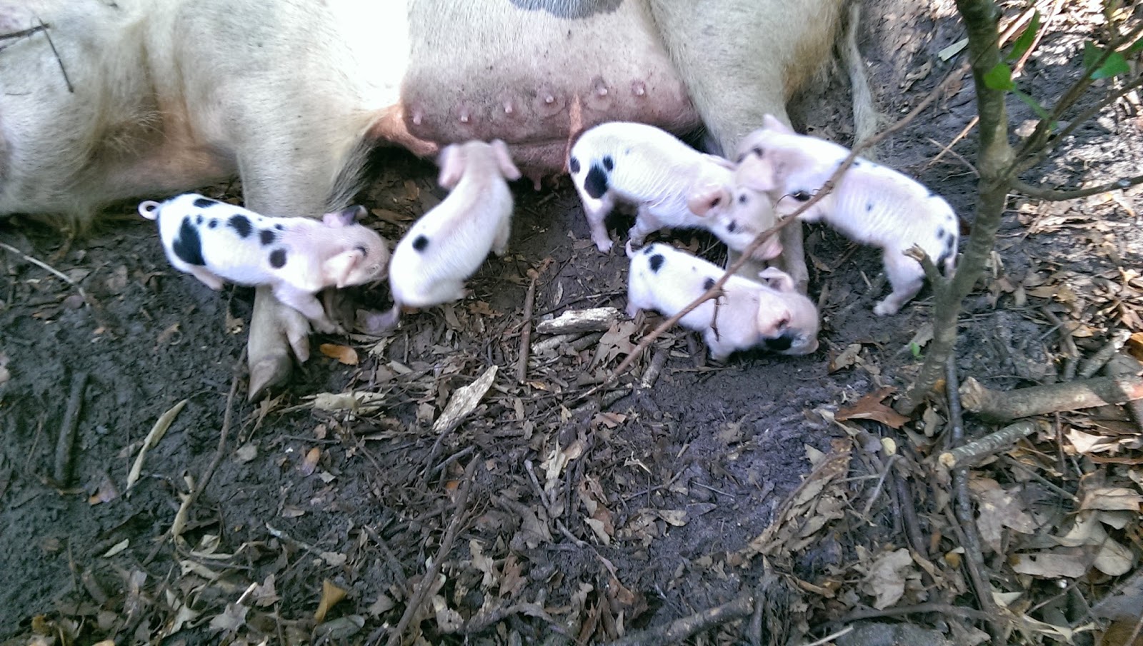 By Saturday morning, four piglets had been born, two girls and two boys. They were nursing and doing well.