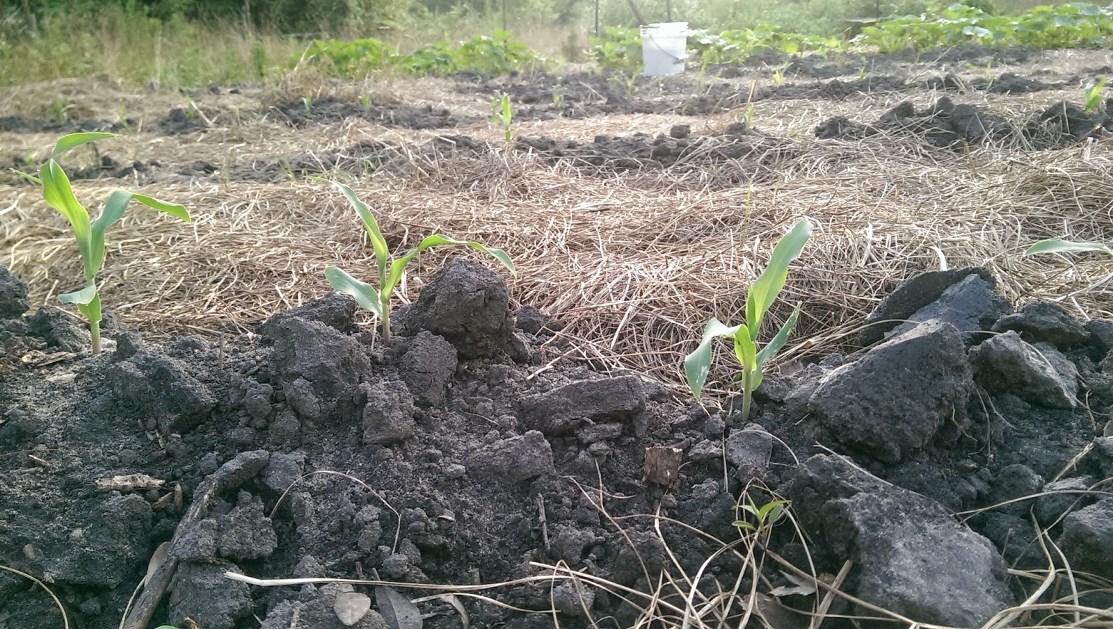 The rare, heirloom corn was doing great, until Tom Sawyer’s gang got in and nibbled down a quarter of it. Jerks!!