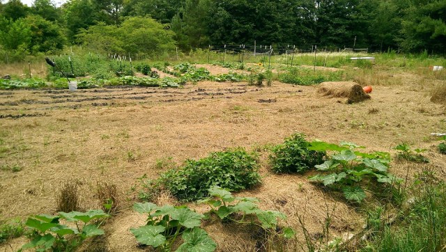 A lot has been happening in this garden of ours! (I take no credit for Ethan’s wonky owl “scarecrow,” just so you know). Man, it’s a big garden. I can’t even photograph it. What was I thinking?