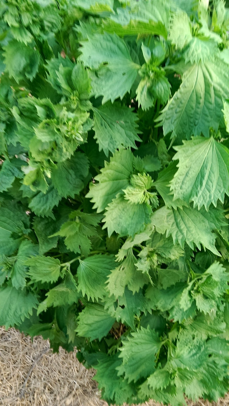 While Ethan and I were taking Matilda back (there was an impending thunderstorm and she walks a lot quicker and behaves much better with Ethan along. She has no respect for me at all.) he brought up the plant again. He said,”What is that horrible plant in the garden?” I told him I thought it was a nightshade. He said it smelled so bad it made his head hurt. “Smell it,” he said, and shoved a leaf at me. I looked at the leaf and realized it was the shiso.