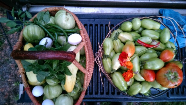 The eggplants, sweet peppers and tomatoes are beginning – just as the powdery mildew is beginning to get the summer squash.  It’s just been SO wet.  I hardly even can get out there between thunder storms.