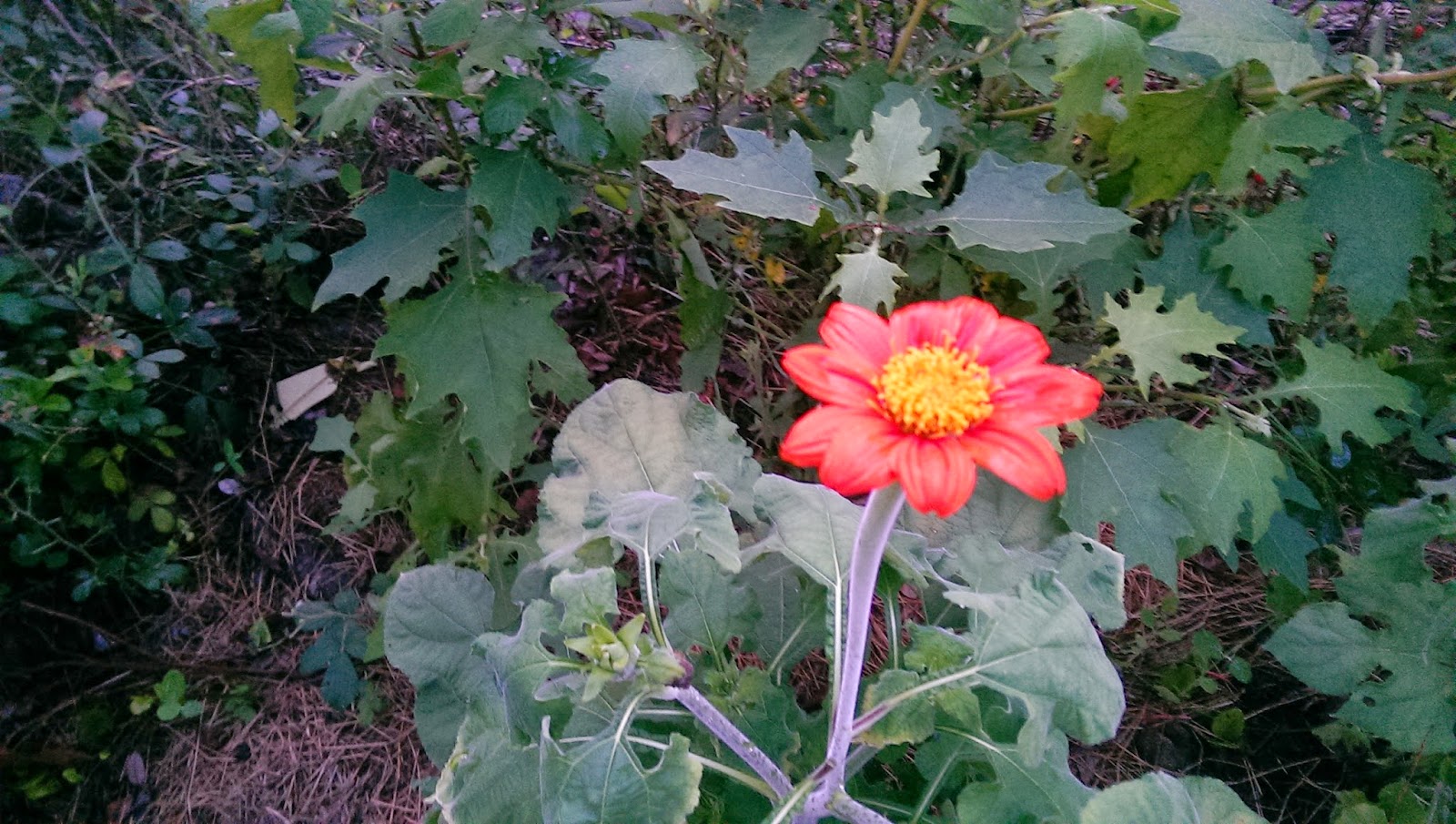 The tithonia is blooming.  My parents always grew it in their little garden when we lived in Diamond Village student housing, and I remember the stray cats that lived behind the dumpsters always liked having kittens in the tithonia patch.  I’ve never grown it myself before, but I believe it will always from now on have a spot in the butterfly garden in front of the vegetable garden.  The butterflies were literally fighting over it the other day during a brief sunny spell.