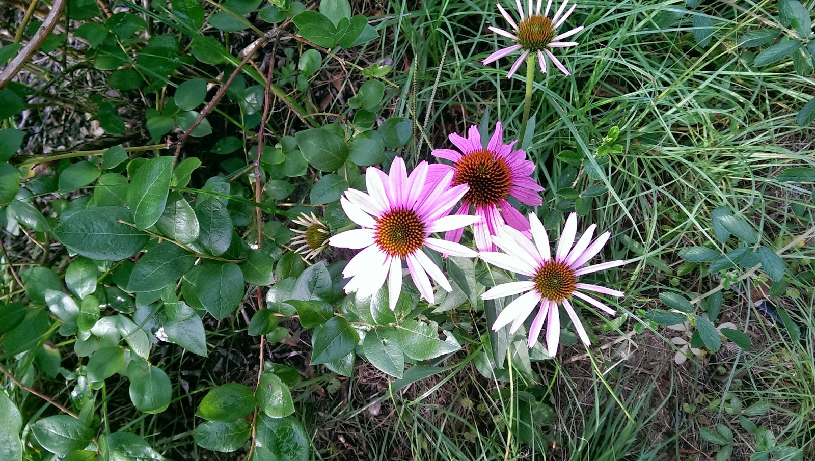 The echinacea that I had started last spring from seed is blooming this year.  It makes me wish I had a perennial herb garden for this and the yarrow and mint and rosemary and other things, too, of course.