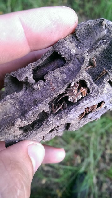 This is a mud-dauber wasp nest that fell off of the eves of the barn. It’s so beautifully crafted out of the black dirt in the garden. On the inside we found old pieces of spiders. It looked like the wasps were storing them for later! I didn’t know mud dauber wasps did that – but perhaps the nest was being used by the spider-killer wasps? Of perhaps spiders are just very tasty to wasps.