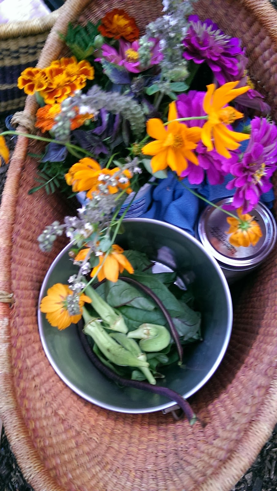 I have been trying to take advantage of the cutting flowers I planted in the garden more. They’ve been blooming since May, but this is really the first bouquet I picked. There’s just been no space on the table, or anywhere else baby-proof, with all the vegetables. Now that the tomatoes are dying back, and there’s some tomato sauce put up, I can make a few inches of room for something that’s just pretty!