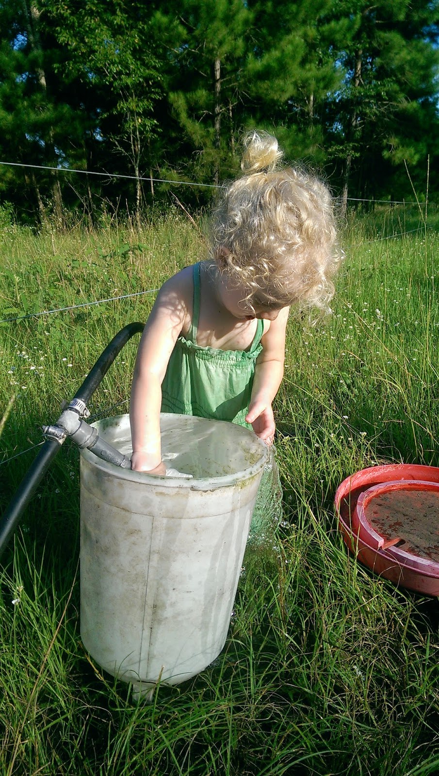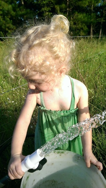 Clothilde is big enough to help with the chores now! She’s been gathering eggs and helping Ethan fill the chicken’s water up. She loves it.