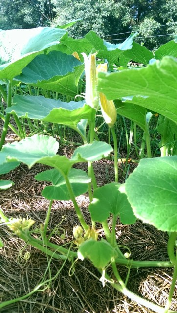 Ethan noticed a really cool yin/yang kind of thing about the male and female squash blossoms. The males all stick up as high as possible. They look like they’re saying, “Pick me! Pick me!”