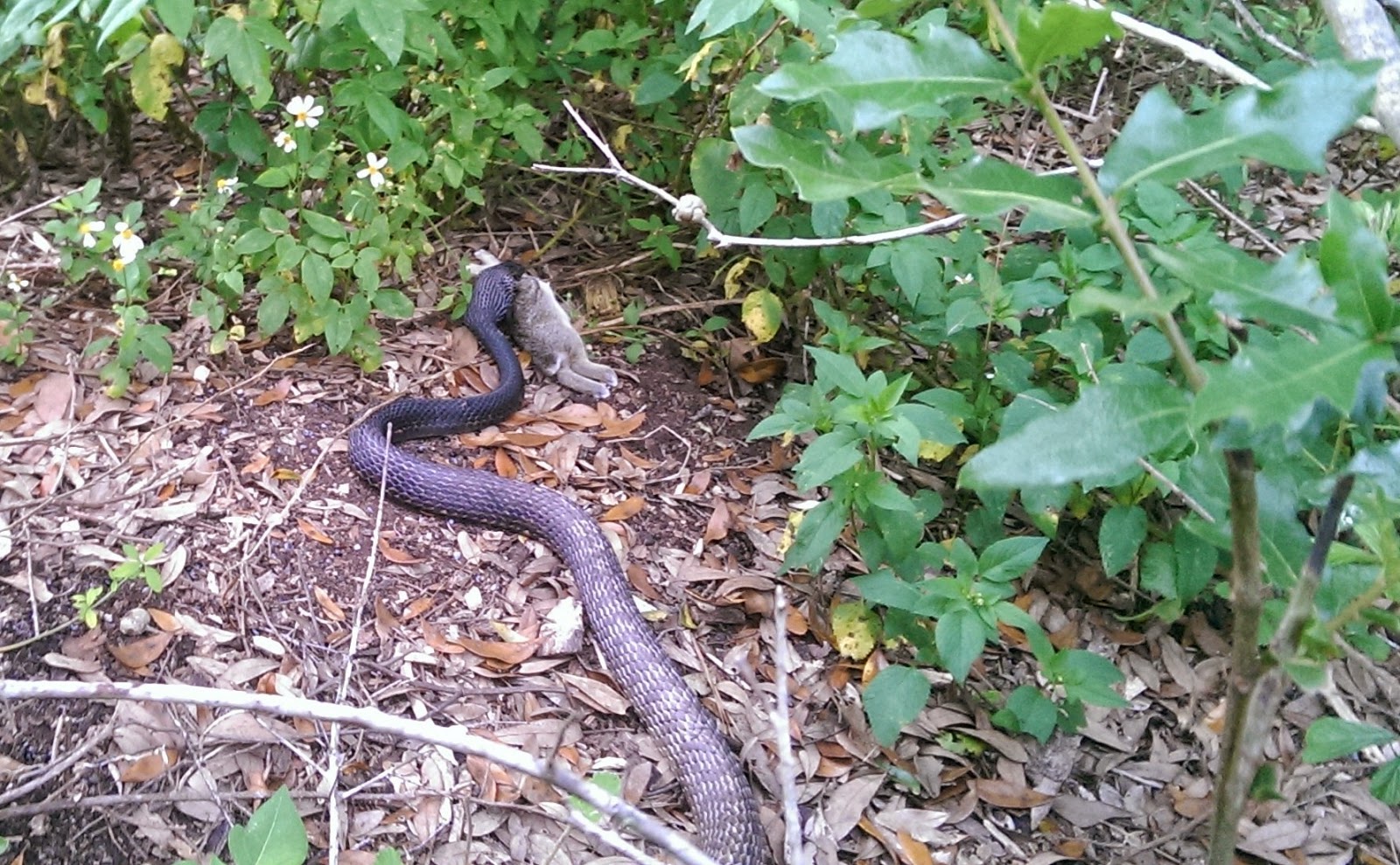 There were actually four baby rabbits at first. Ethan caught three, but the almost 8-ft long coachwhip that likes to hang out in an empty pipe (that’s how we know how long he is) caught one, too. So if we let the others go, I’m guessing he’ll probably eat them for breakfast, lunch and dinner.