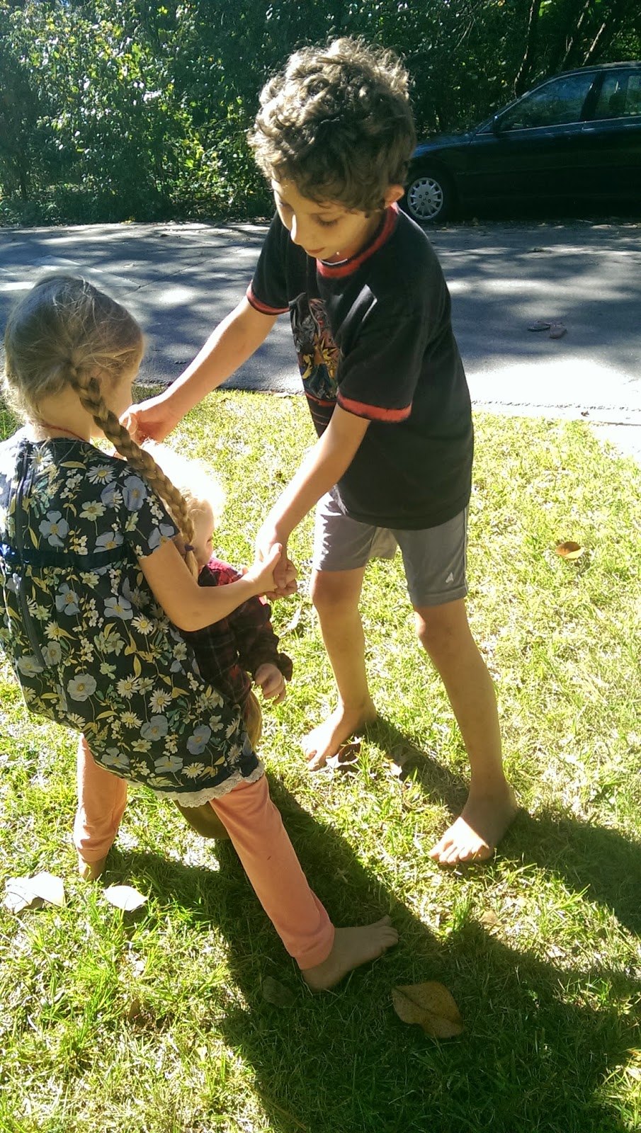 Rose helped me seed the last stretch. She skipped and tiptoed around the field, tossing rye seeds like a hyperactive rye fairy. She sowed at least 10 lbs. It will help fill in the gaps I missed while I was stumbling around the field in the moonlight, having my ankles scratched by unseen mowed blackberry stems. We sang the pentatonic song that we have sung for our circle every homeschooling day in November: