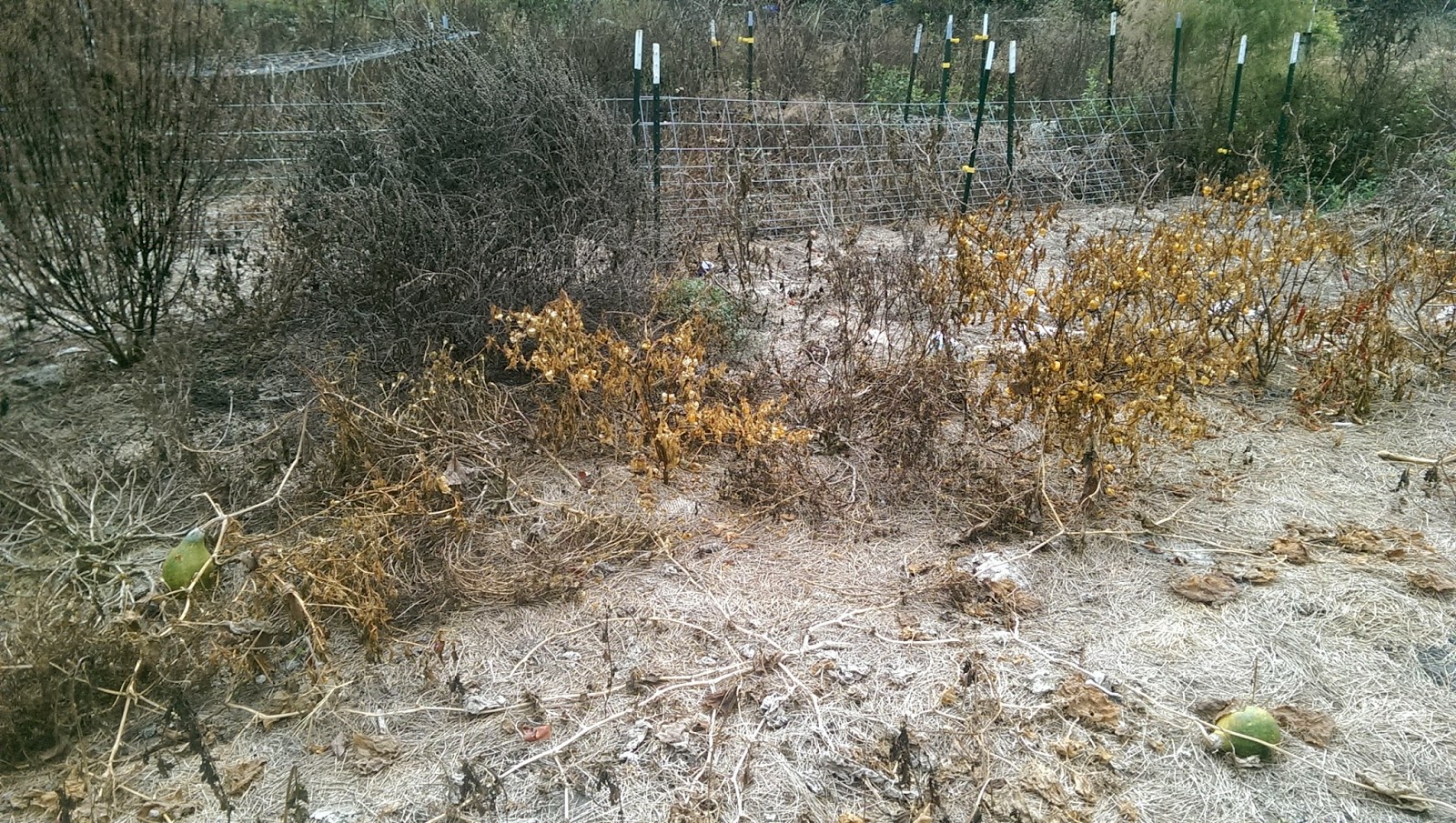 I stumbled over an unripe pumpkin, still attached to the umbilical vine.