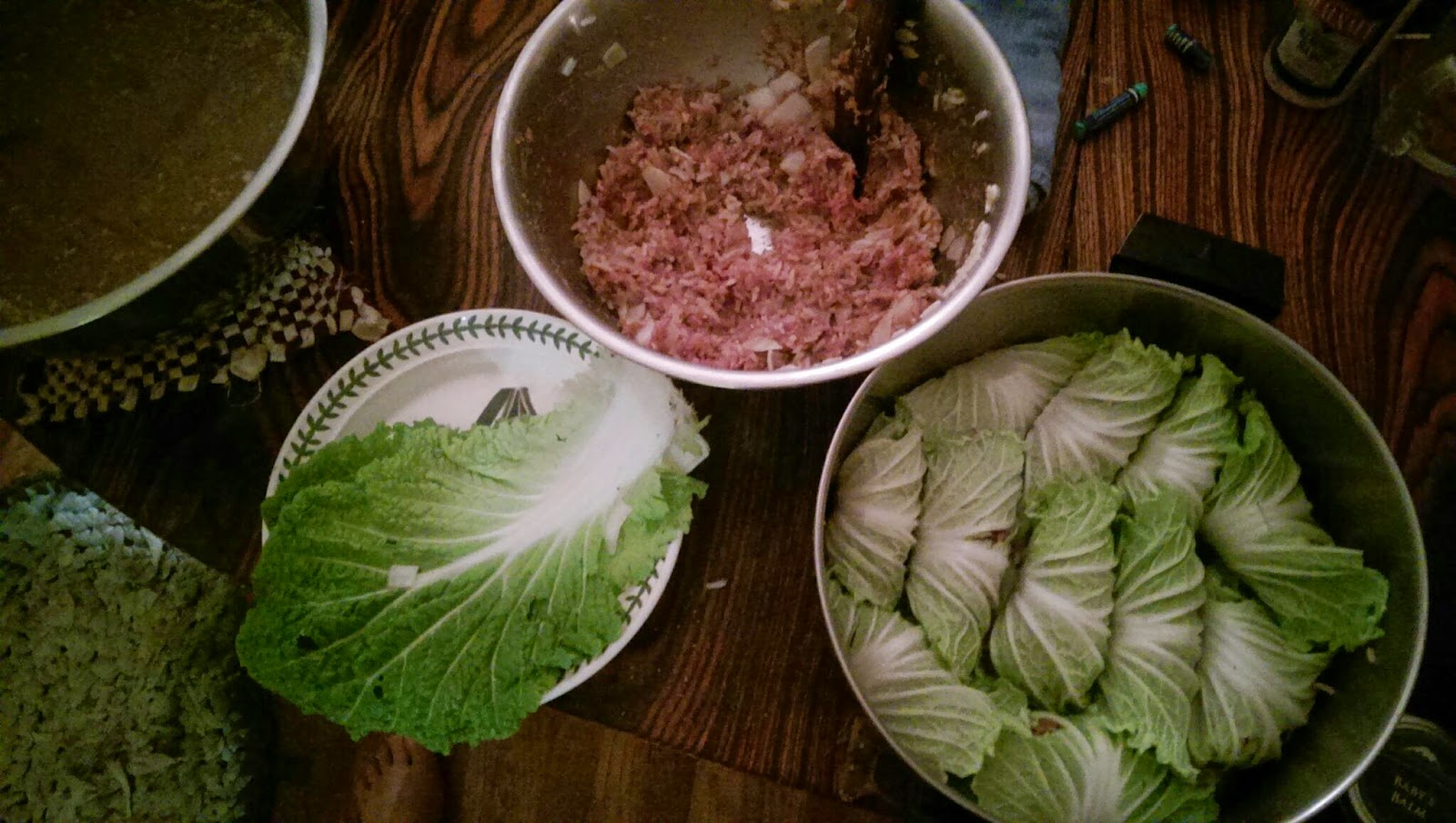 The savoy cabbage in the garden isn’t ready yet, but I used a beautiful head of Chinese cabbage and made Halupki. It wasn’t quite the same, but it was a decent home-grown substitute. I learned how to make it from my French grandmother, who learned it from her Slovenian mother-in-law, my great-grandmother Anna.