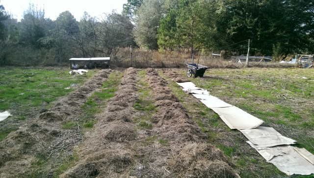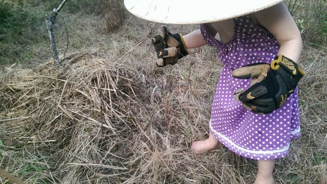 We are starting to build the summer garden, too. We’re picking up the old hay from the cows, which also has lots of manure mixed in. I am hoping for these beds to be permanent. I don’t want to have to keep putting cardboard down. I’m really piling on the hay in hopes that the weeds will be kept back until the season is over, and I can pile more hay on. Perhaps a late summer cover-crop, too.