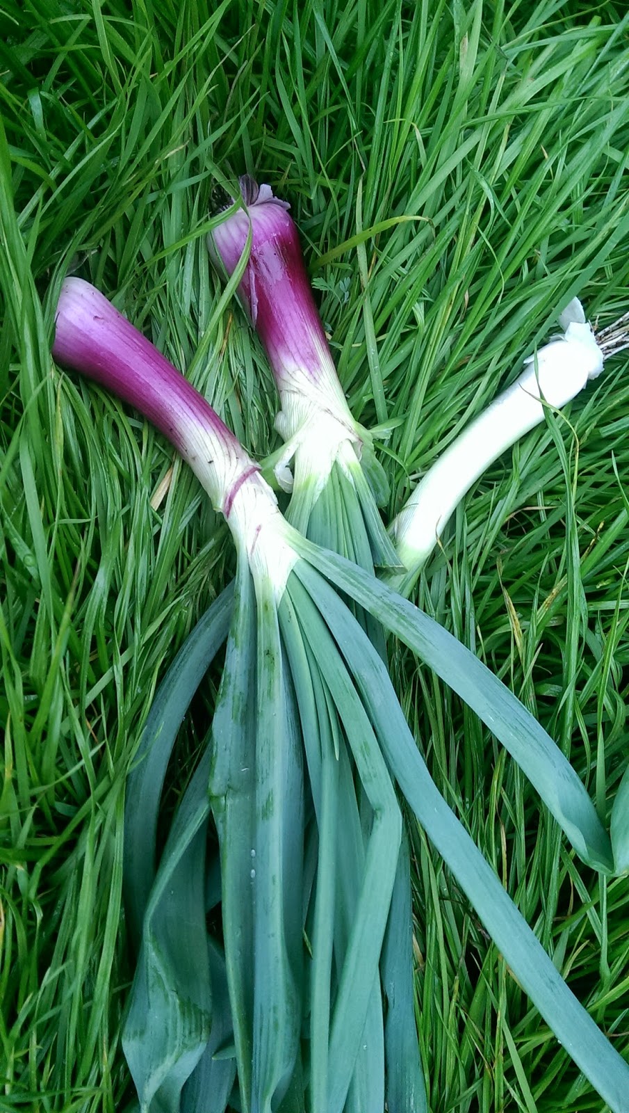 The onions have begun bulbing! I’ve gotten lots of wonderful green onion to add to pesto and soups so far, but I pulled some of the larger bulbs to make onion soup.