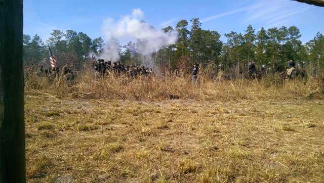 Last weekend found us at the Olustee battlefield for the annual reenactment. We’ve gone most years, but we missed last year which was the 150th anniversary of the battle. Ethan was a major civil war buff since he was a kid, and he has an 1861 reproduction black powder muzzle loader he fires off for 4th of July and New Year’s. Back in his college days, he used to borrow a uniform/costume from a friend and participate some of the reenactments around Florida. He still does every now and then, although it has been more challenging since getting dairy animals and having Clothilde. Mirin first went to Olustee when he was a year old, but he slept through most of the battle, cannons and all.