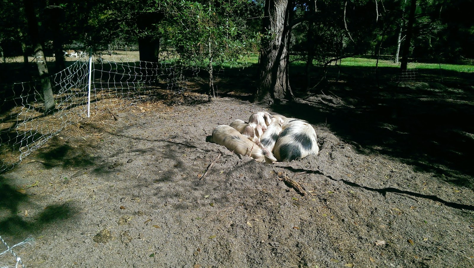 The piglets seem twice the size they were last week. They grow so fast! They are still cute as can be. It’s the way their little ears flap when they run. If they sense any sort of danger, they scatter, running incredibly fast, and hide.