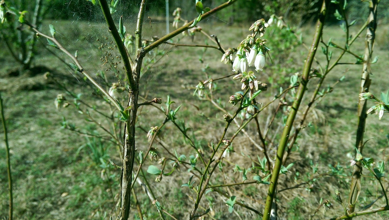 The late-blooming blueberries are now covered in flowers. The bushes are so tall now – as tall as I am. If we don’t get any more frosts, it looks like we’ll have a good blueberry year. The early-blooming ones seemed to have weathered the last cold spell well, but alas, the Snow Queen doesn’t seem to have any peaches this year. The Florida King peaches all wisely waited to bloom, so perhaps we will have some from them.
