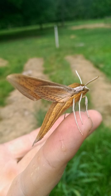 My heart goes out to sphingids. My dad raised a lot of different kinds when I was a kid, and I always thought they were interesting. I’ll never forget the ones he put in a bowl of water to observe their swimming behavior. And there was the stupid one that crawled down the stem of host plant and drown itself in a tiny vial of water. Only its face was in, but that was enough. It didn’t think to back up at all, or maybe it couldn’t walk backwards. I remember it was like a tiny sack of water, all limp. We held it for awhile, and then laid it out on a paper towel, and it ended up coming back to life. My dad blocked up the vial with plugs of paper towel so it wouldn’t do that again.