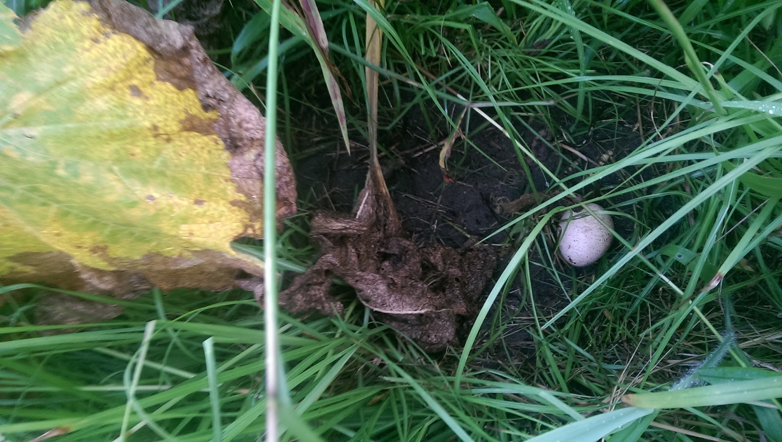 I came across this egg the other day, and picked it up thinking Ethan had accidentally let one of Gorgeous’s eggs roll off. But then I noticed it was in a nest!