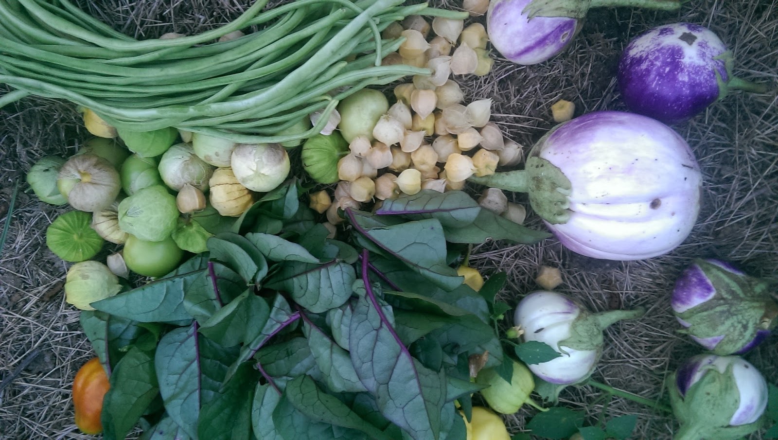 We are at the point of the summer where the early stuff is dying back – say goodbye to summer squash, cucumbers, and cantaloupes. Say hello to long beans, okra, eggplant, malabar spinach, and the last of the tomatilloes and ground cherries.