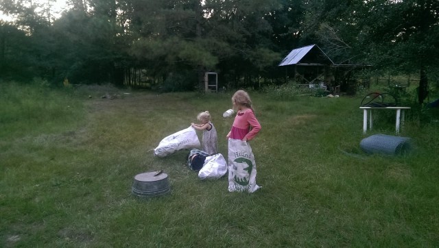 We spent almost all weekend out at the farm – Ethan mowed the pastures and I worked in the garden. Clothilde helped plant carrots, turnips and parsnips. It’s been needing to be done for a month now, but it was just too hot to move, or it was pouring rain when we were there. It was so nice to be working the ground.