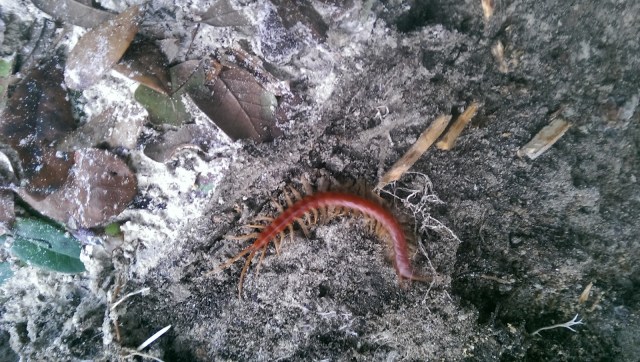 A centipede…I see lots of milipedes of different sizes, but hardly ever a centipede.