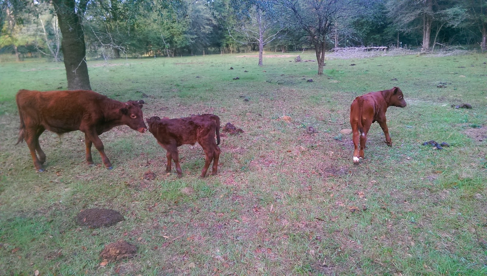 It was decided that she should be named Holly. And that gave us an idea of what to name Chestnut’s baby….no one could agree. Ethan wanted to call it “Spats” for some reason. Rose wanted it to be called “Proudfoot” after a character in a book. But I pointed out we should call him Mistletoe – whatever made him his lovely ruddy brown color “missed” his one white toe. It even has a pun in it, for Ethan’s sake. Mistletoe was so happy to have another calf to play with. He’s been trying to play with Sappho, Ninja, Lichen and the other calves from last year, but they are too grown-up now and aren’t very interested.