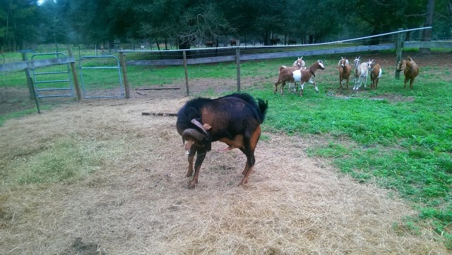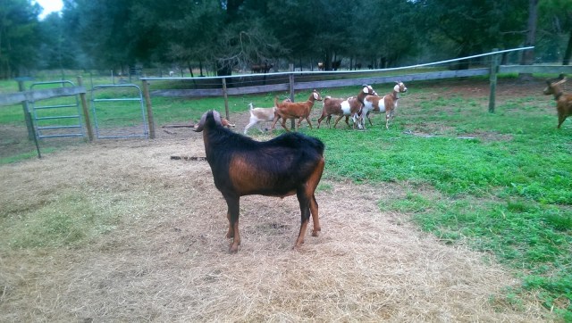 When I opened the gate a few minutes later to let them into the larger paddock, I was careful to stand aside so I wasn’t trampled. He came charging after them, playfully leaping and kicking. He ran them around for a little while, and then settled down by the hay, while they stayed in a little group at the farthest corner away possible, and looked indignant and miserable. It wasn’t a good first impression with them, but I’m sure they’ll come around.