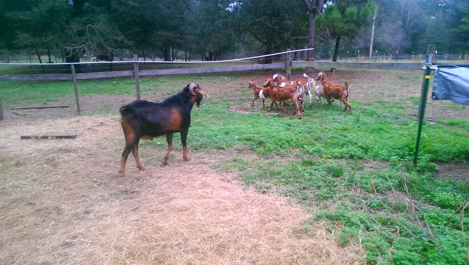 When I opened the gate a few minutes later to let them into the larger paddock, I was careful to stand aside so I wasn’t trampled. He came charging after them, playfully leaping and kicking. He ran them around for a little while, and then settled down by the hay, while they stayed in a little group at the farthest corner away possible, and looked indignant and miserable. It wasn’t a good first impression with them, but I’m sure they’ll come around.