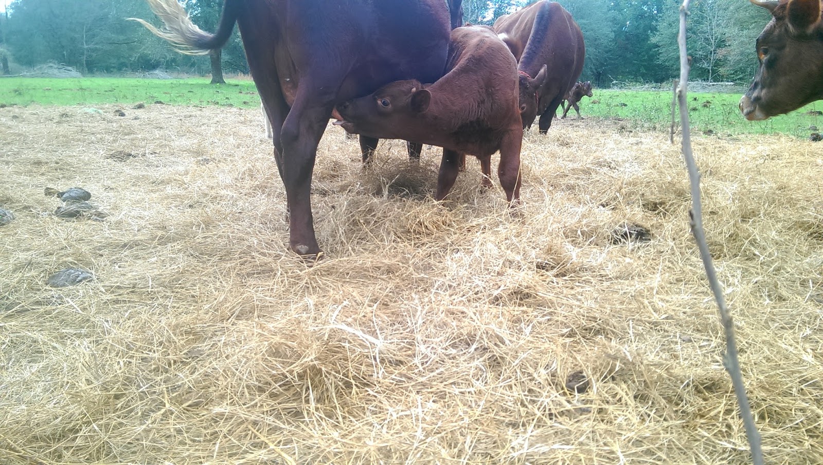 Ethan filled a smaller trough up on the side so the lesser-status cows could also drink. Flora and the yearling calves flocked to it, and pushed the little calves off. The little calves looked unhappy about this, but they were probably nursing all day long, anyway. Nutty licked a leak at the spigot. Everyone had water all over their faces.