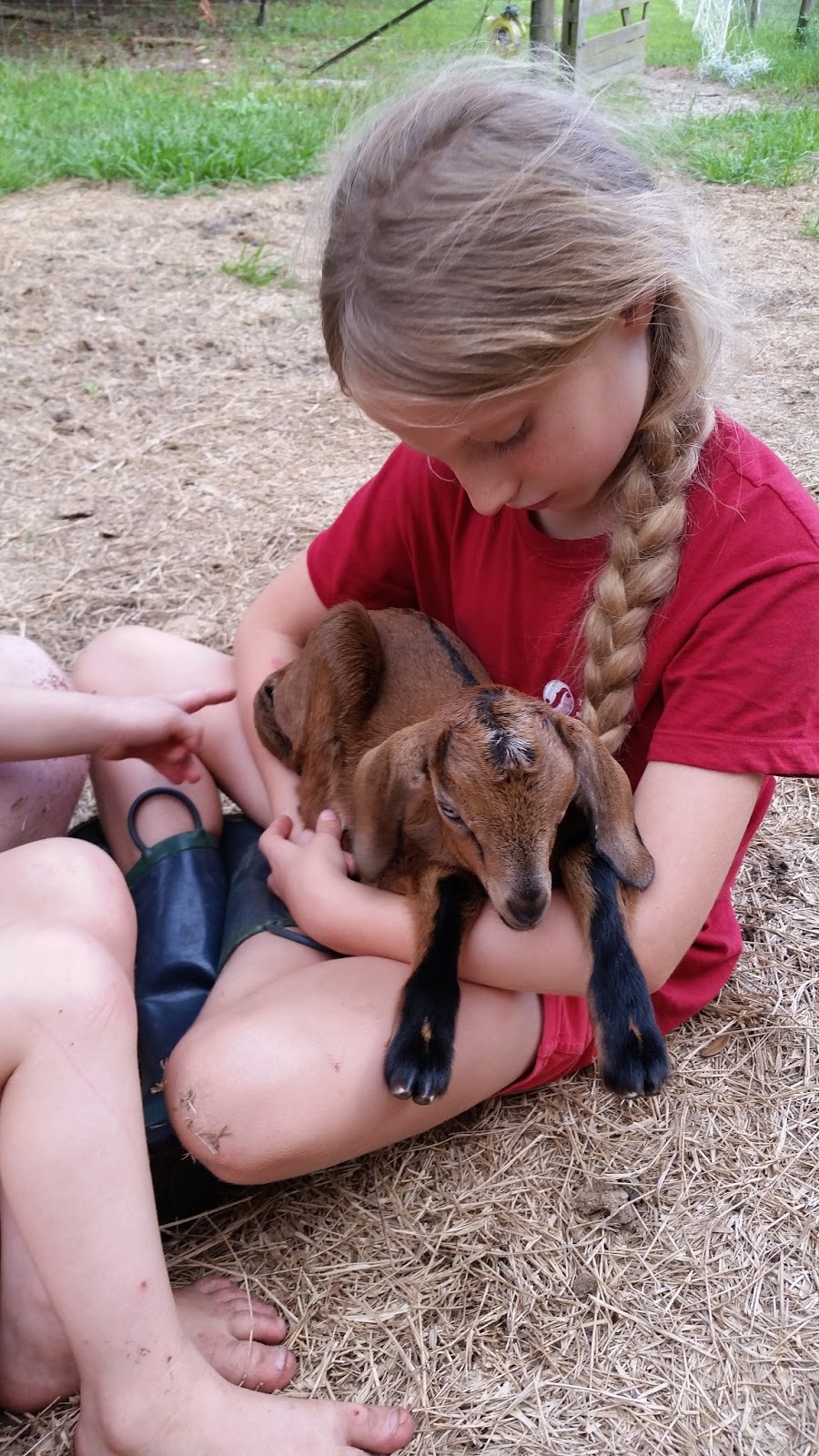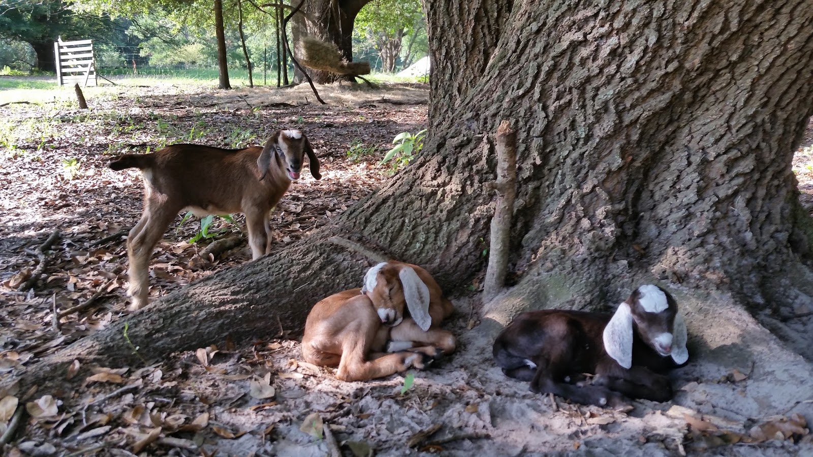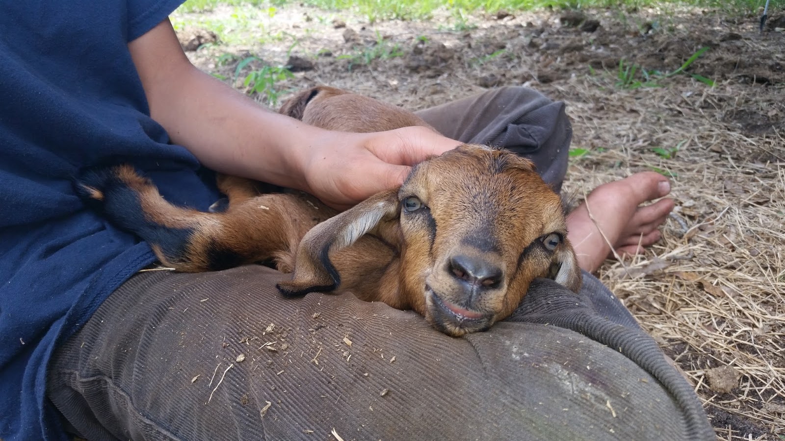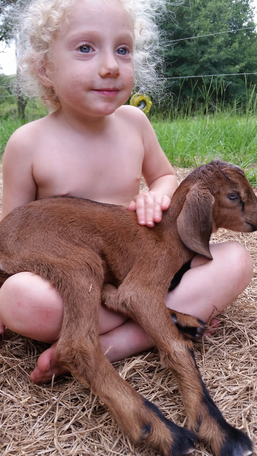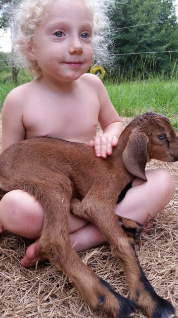 Two evenings in a row she left the baby somewhere in the back field and then freaked out later when she couldn’t remember where it was. She was bleating hysterically (while she was still eating) and we all had to go out and find it – it was quite difficult to find…it’s amazing how old dried-out cow pies look like a sleeping baby goat from a distance.