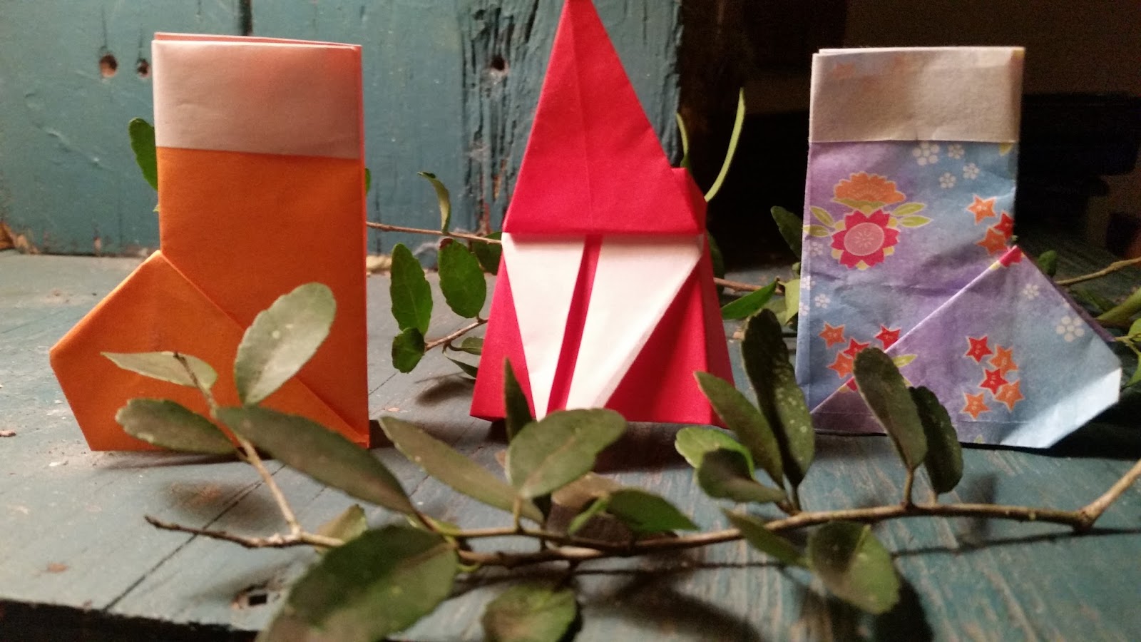 Origami is fun and also can be a good brain exercise. We have several origami books we’ve gotten ideas out of, but here are a few online resources I can share with you for a Christmas tree, a stocking, a star, a Santa, (and different Santa here – this is more like the pattern we have in our books).