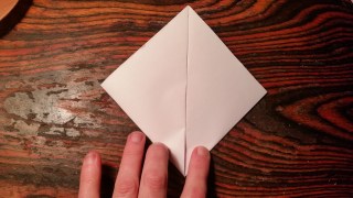 Origami paper can be expensive, but you can make your own by cutting a piece of scratch printer paper as I described in the first step for making a snowflake. Color one side with crayon to make it a different color.