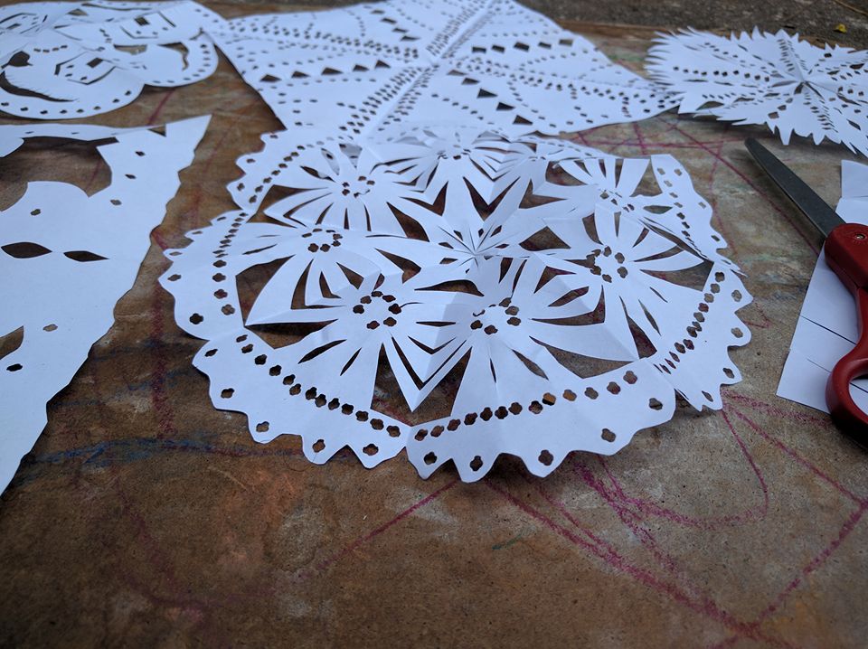 We don’t usually get to experience snow here in the Deep South, but it is still fun to make paper snowflakes. I love the way a snowflake surprises you with what it looks like once it’s unfolded.