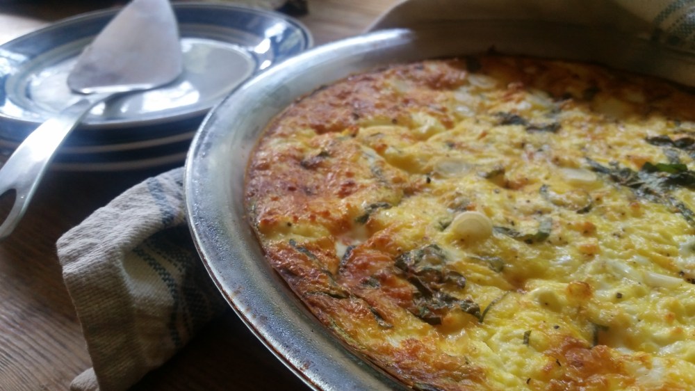 - Beat the eggs with a small pinch of salt and the cream until uniformly yellow and creamy. Pour over the cheese in the pie pan. Slice wild garlic bulbs and sprinkle on top. I also like to add a few grinds of black pepper.