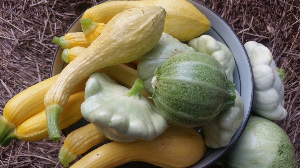3 lbs young, tender summer squash (zucchini, yellow squash, and patty pan were what I had from the garden)