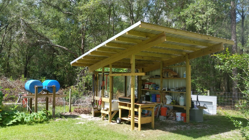 “Aside from sharing the harvest, I really enjoy building things to make growing easier, things like self-watering beds, chicken tractors, trellises, compost tumblers etc. Above is a potting table I just finished building, and below is a new garden shed.”