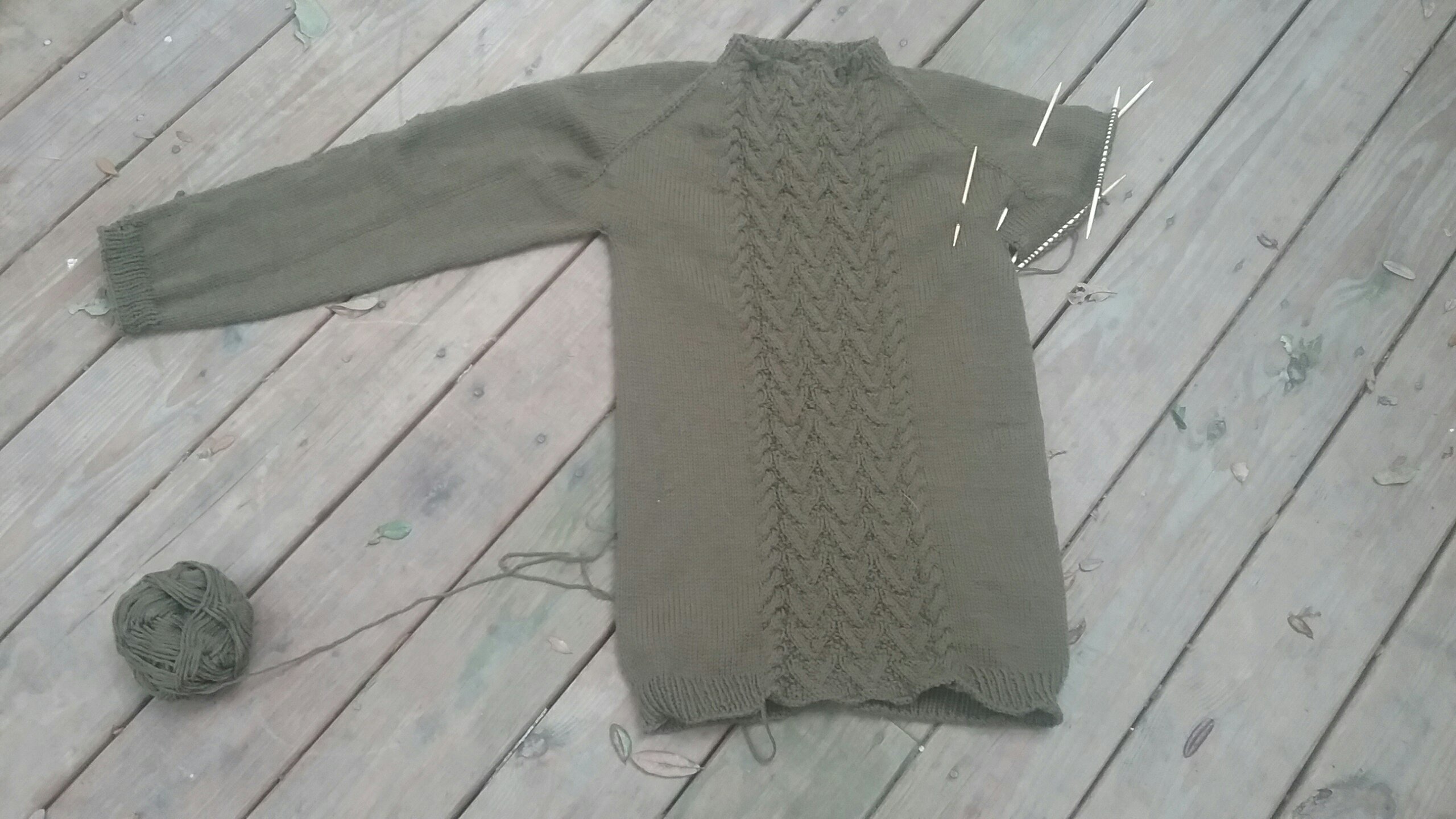 I just finished this challenging cabled raglan pullover for a friend,  mostly my own design except the cables,  after more than a year of not knitting much but lace,  and having failed at my last ambitious cardigan design attempt with complicated color work (I messed up the gauge somehow,  and it was too heartbreaking to start over again once I realized! ). Somehow it’s harder to knit for other people.  I think with family,  there’s the assumption they will deal with whatever comes off the needles. The notes are on ravelry,  though they aren’t perfect,  I certainly made a few mistakes.