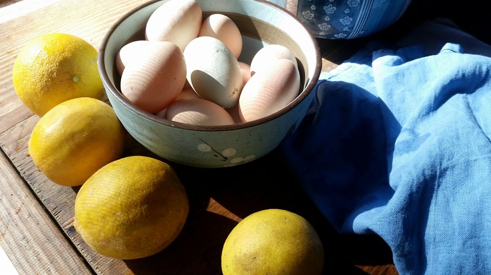 And the lemons.  Like little suns themselves,  brightening my cold, dark kitchen.   And they grow so abundantly here in the winter.  Once the stove goes out,  there’s no heat in the kitchen. One morning there was an icicle hanging from the tap,  and we’re having to keep eggs in the fridge to keep them from freezing.
