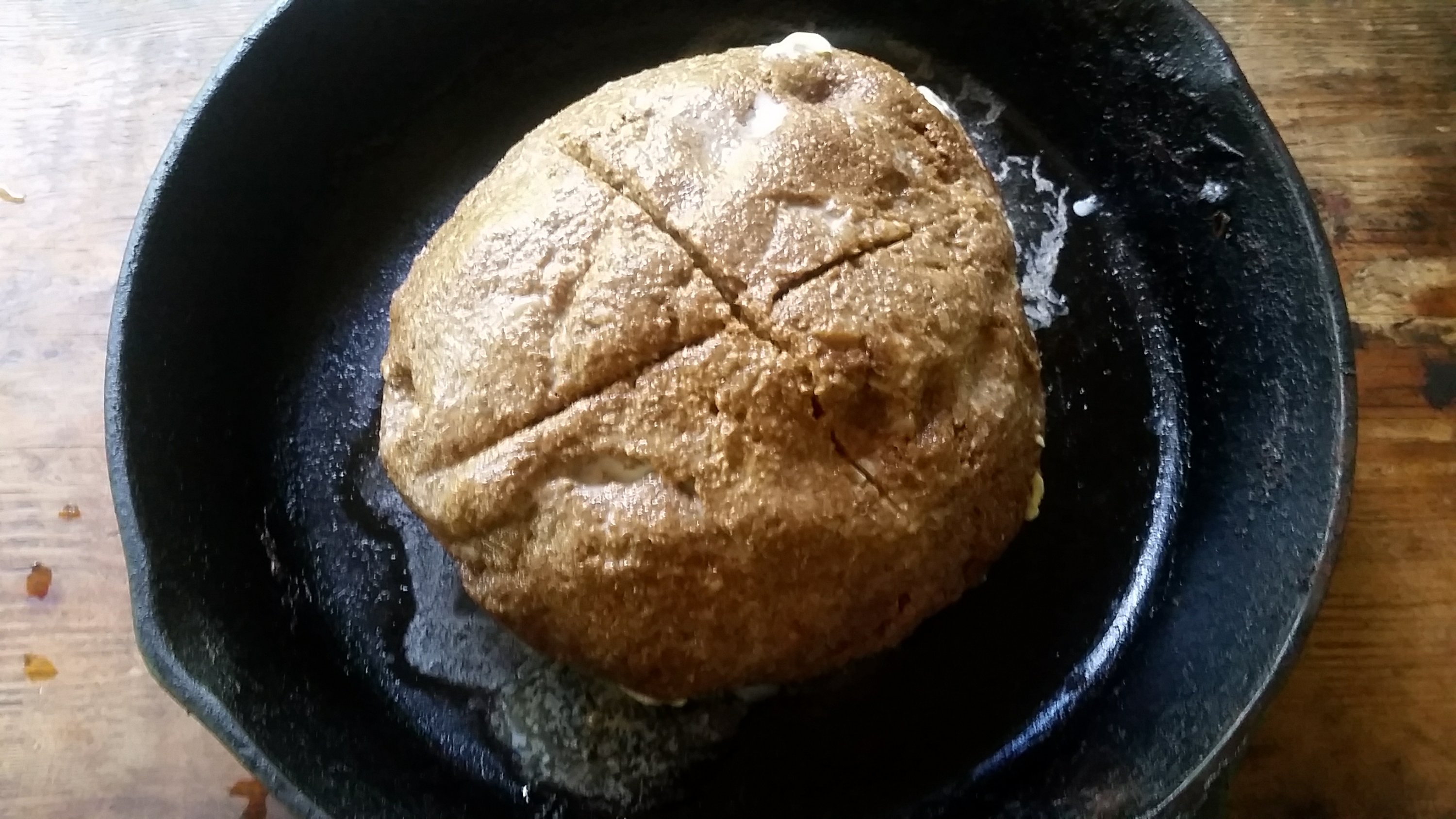 - If you’re using a hot frying pan, heat the pan in the oven until very hot. You can also use a cookie sheet but it might bake more quickly on the bottom. Add just a pat of butter before plonking the loaf in, and brush the loaf with a little milk ( This produced the same crust as my dream bread, but you can leave it out or brush with beaten egg instead if you prefer).