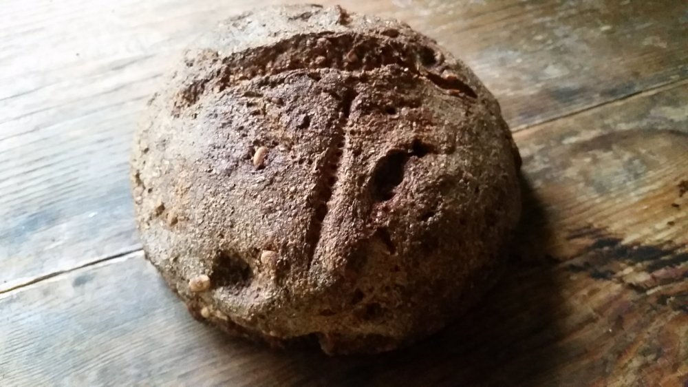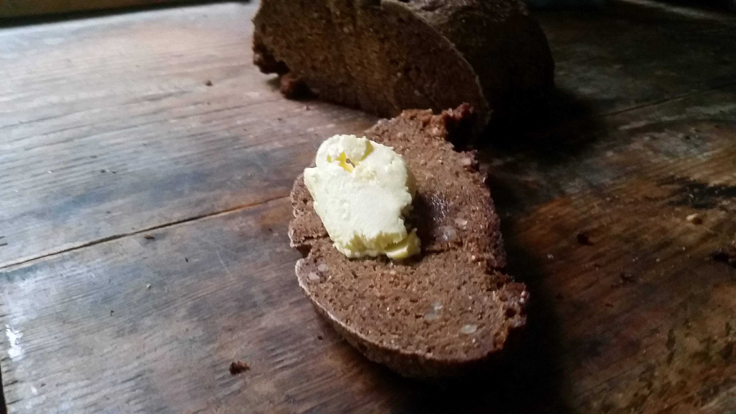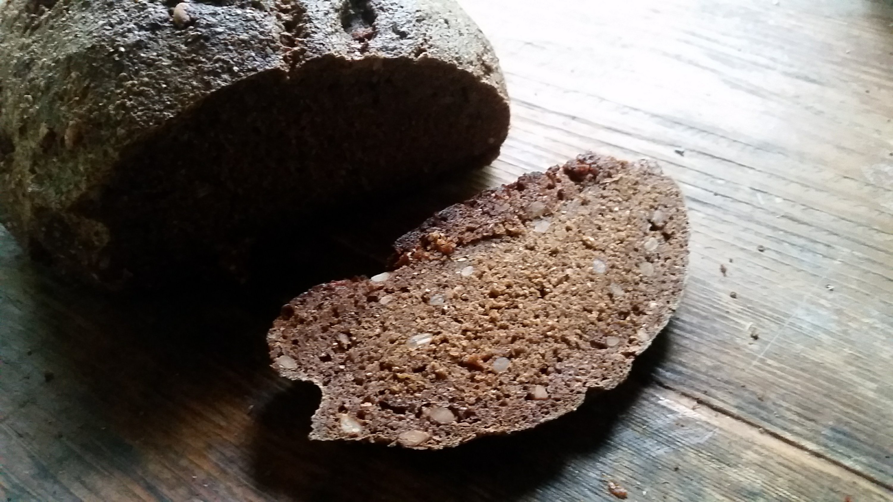 I hid behind a shelf and opened the bag (I promise I would never do this in real life!). The bread smelled delicious. It was dark and moist and slightly sweet. The rye gave it a nutty flavor, the molasses a delicious aroma, and the sourdough culture a pleasant tang. I was going to look for more when the shelf behind me swung open, revealing another world, another purpose, and Walmart swirled into mist as another reality came forward. People had been looking for me. I had tasks to complete, but I spent the rest of the dream trying to get back to Walmart so I could see what else they had on the shelves in the food section.