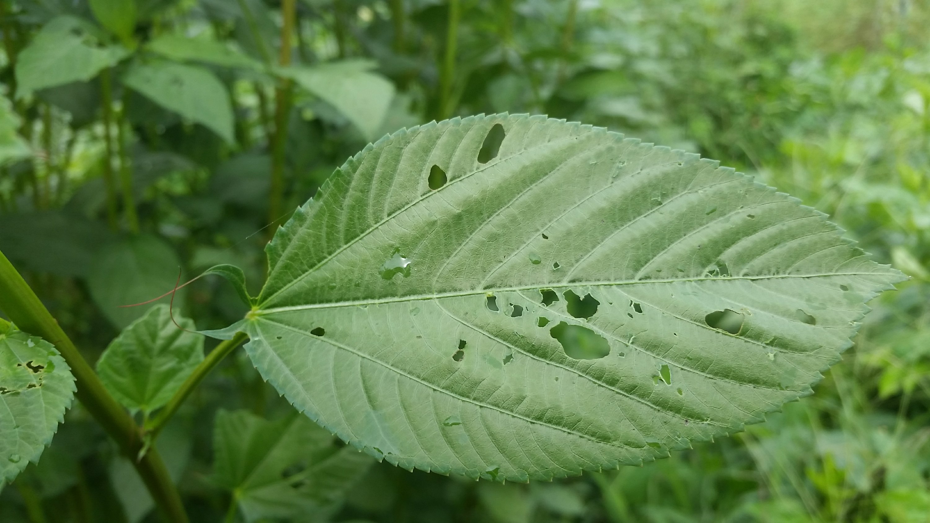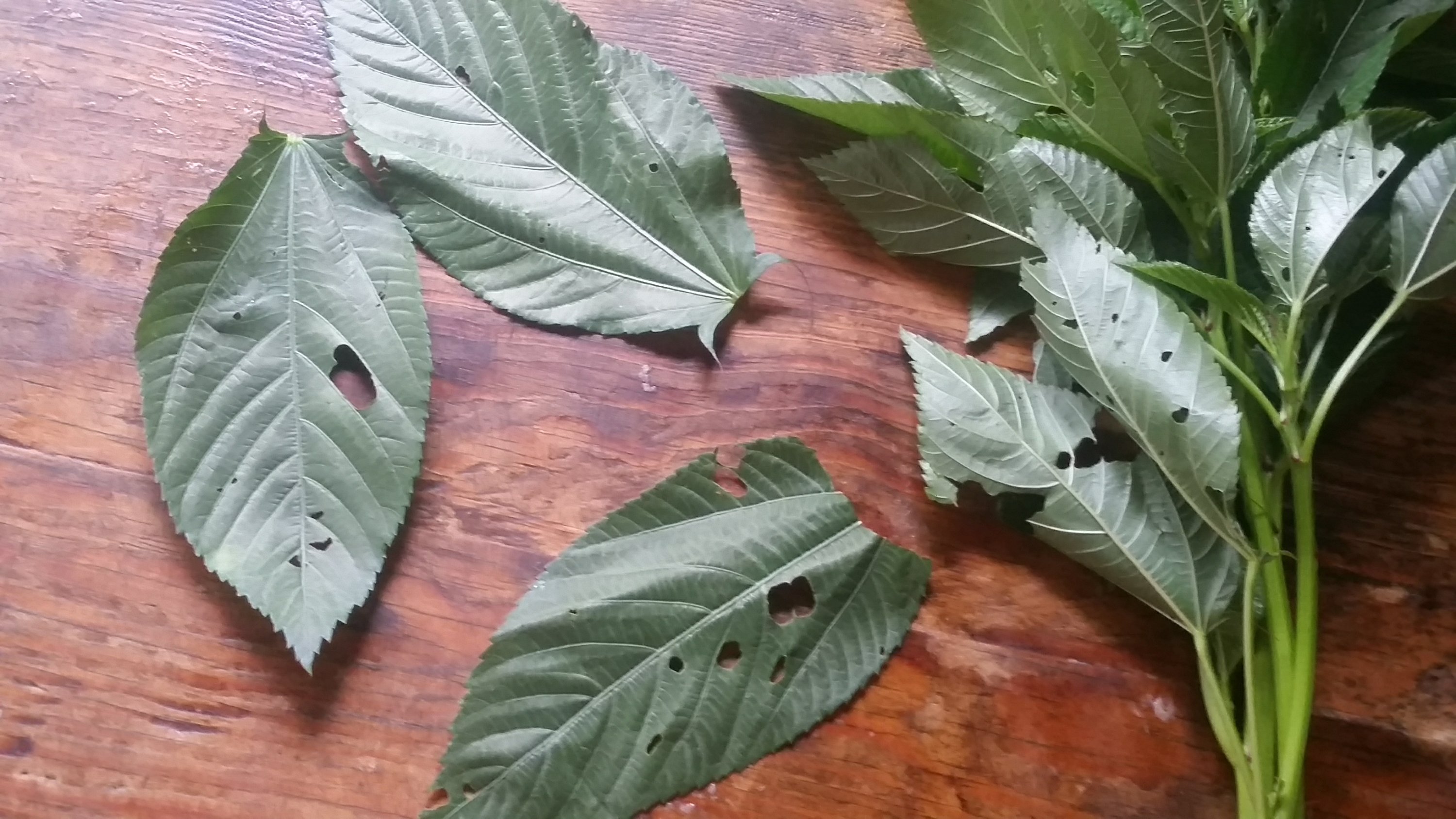 The glory of the garden right now is molokhia, or Egyptian spinach. It’s thriving in the heat and rain, growing high over my head.