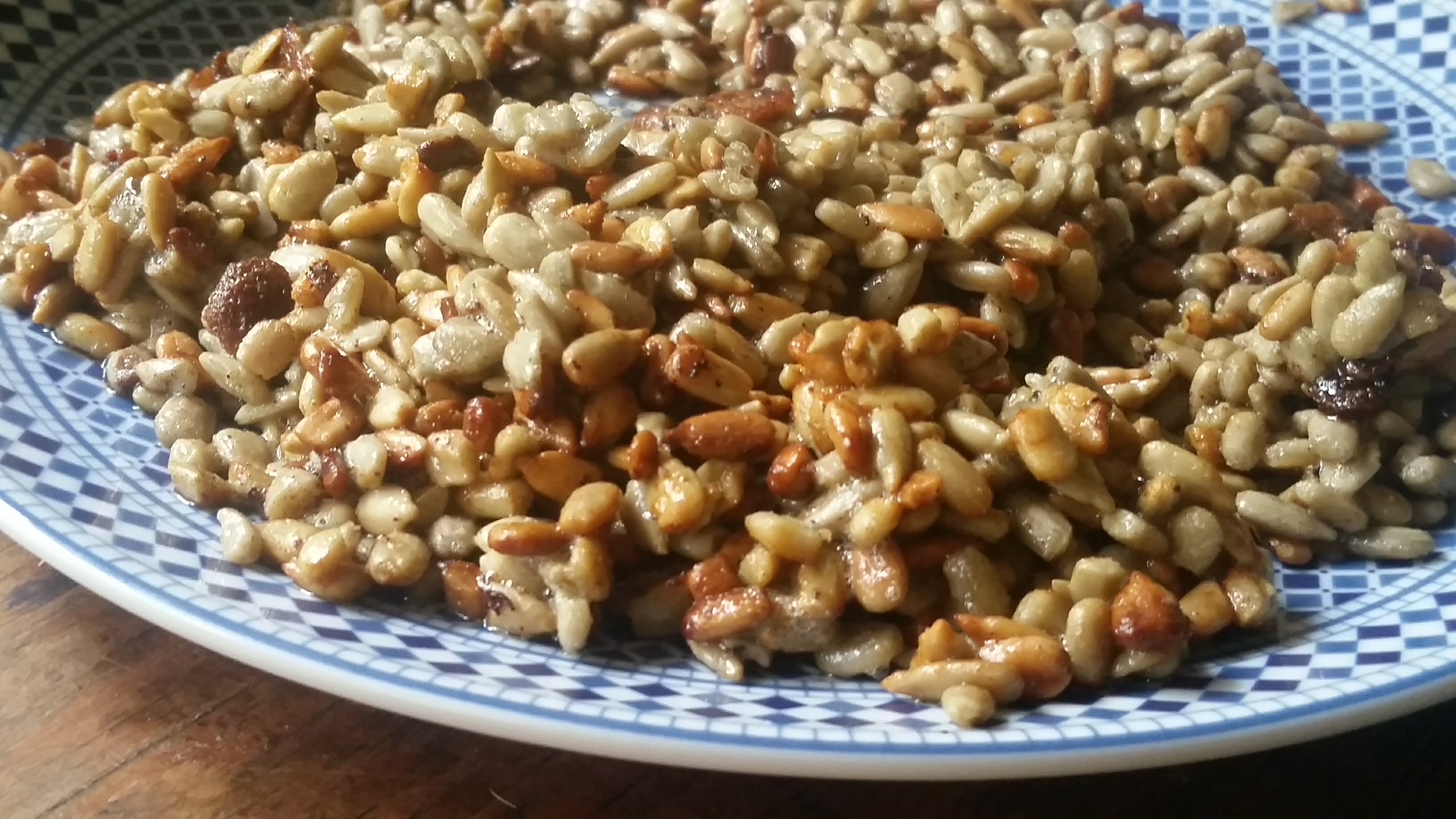 1. Melt butter in a pan and sprinkle the sunflower seeds in a single layer.